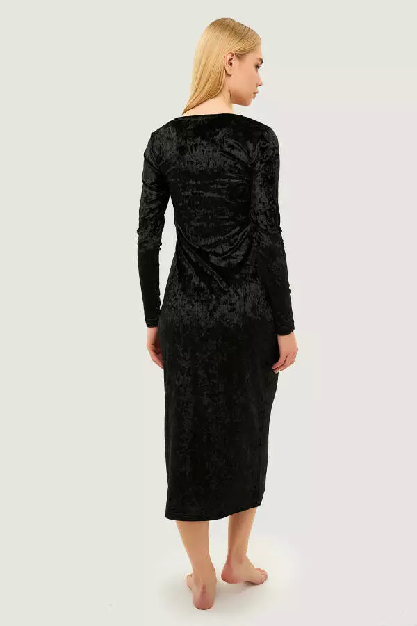 М’яка, глибока текстура тканини додає вишуканості, а облягаючий крій акцентує лінію талії. Ідеальний вибір для особливих подій, де стиль і комфорт поєднуються в одному вбранні