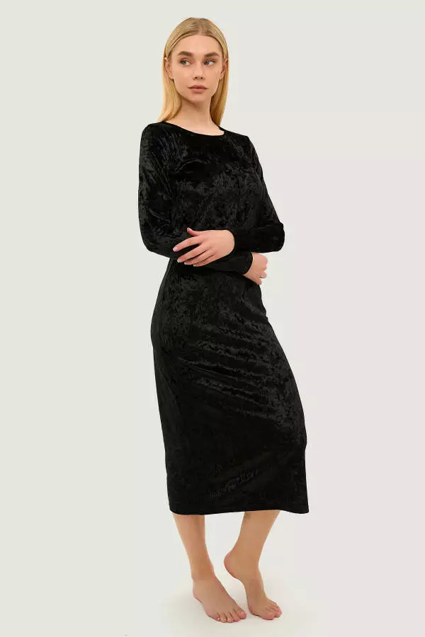М’яка, глибока текстура тканини додає вишуканості, а облягаючий крій акцентує лінію талії. Ідеальний вибір для особливих подій, де стиль і комфорт поєднуються в одному вбранні