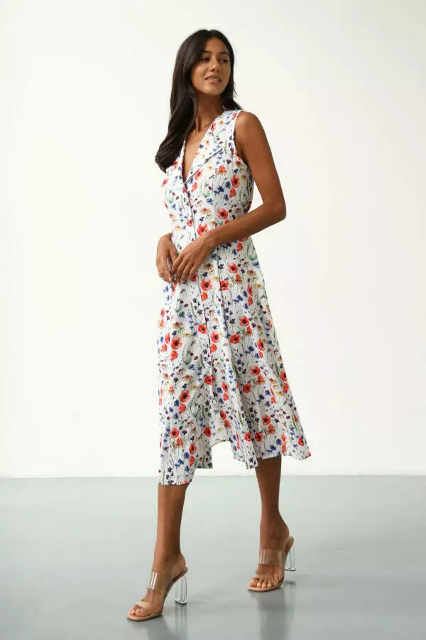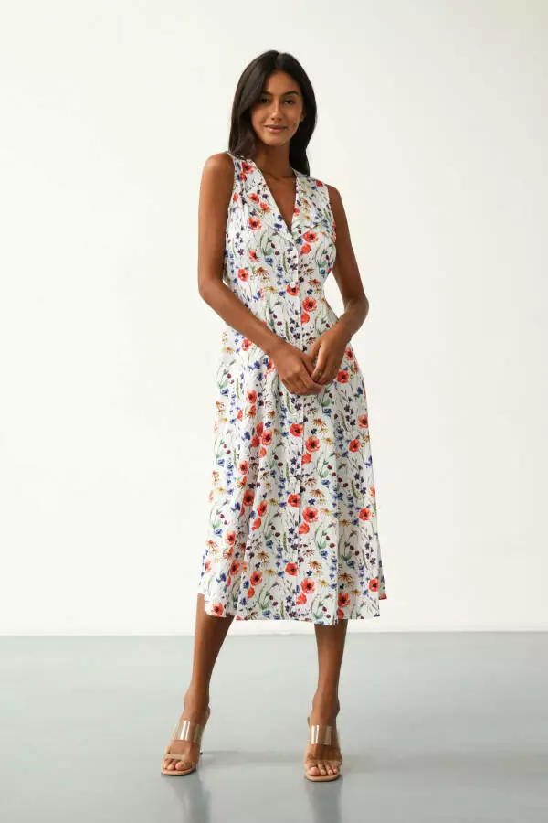 Сукня сарафан літній довгий жіночий на гудзиках зі штапелю German Volf 23049 Білий принт квіти L(46)