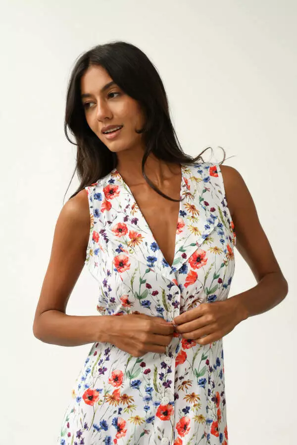 Принт "Квіткове поле" надає сукні особливого шарму, створюючи ніжний і водночас яскравий образ. Квіткові мотиви підкреслюють жіночність, додають образу легкості та гармонії, що ідеально підходить для літнього гардеробу. Малюнок із квітами створює відчуття безтурботності та радості, що дозволяє відчути себе частиною природи. Такий принт виглядає завжди стильно й універсально, дозволяючи виглядати яскраво та привабливо, зберігаючи при цьому природну витонченість.