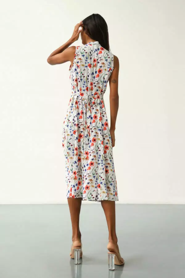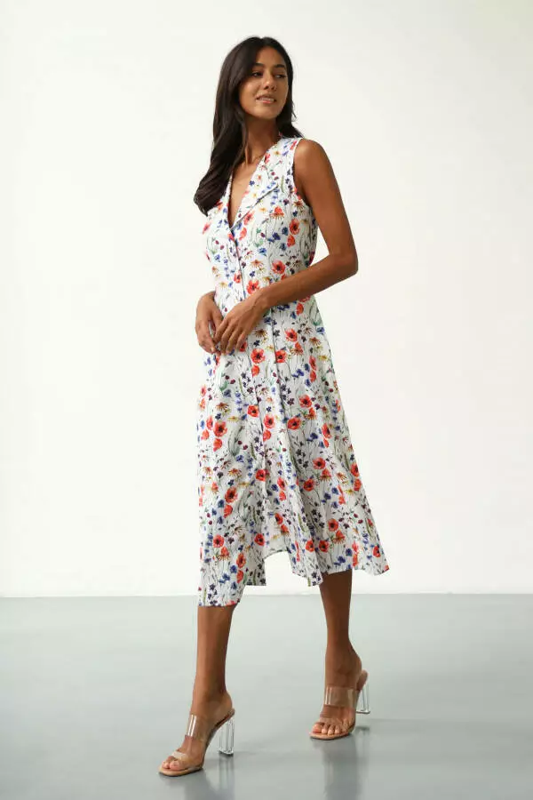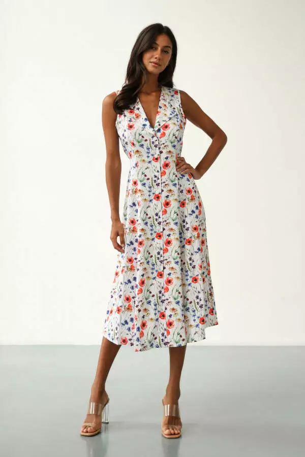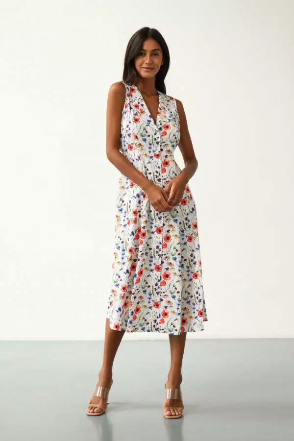 Принт "Квіткове поле" надає сукні особливого шарму, створюючи ніжний і водночас яскравий образ. Квіткові мотиви підкреслюють жіночність, додають образу легкості та гармонії, що ідеально підходить для літнього гардеробу. Малюнок із квітами створює відчуття безтурботності та радості, що дозволяє відчути себе частиною природи. Такий принт виглядає завжди стильно й універсально, дозволяючи виглядати яскраво та привабливо, зберігаючи при цьому природну витонченість.