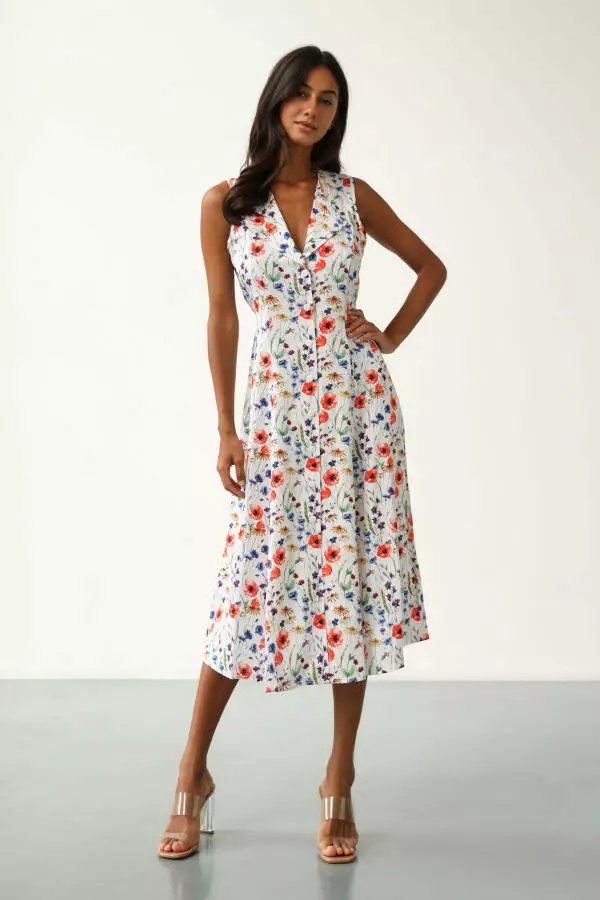 Сукня сарафан літній довгий жіночий на гудзиках зі штапелю German Volf 23049 Білий принт квіти XL(48)