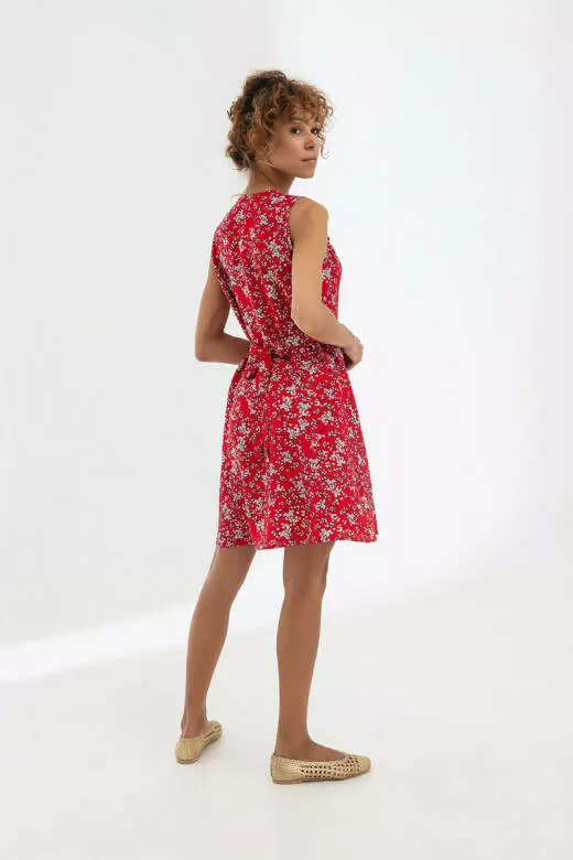 Сукня жіноча коротка з застібкою попереду та квітковим принтом