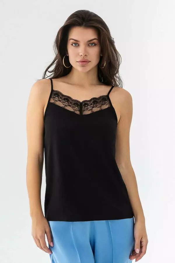 Топ шовковий з мереживом German Volf Чорний XS(40) 22013