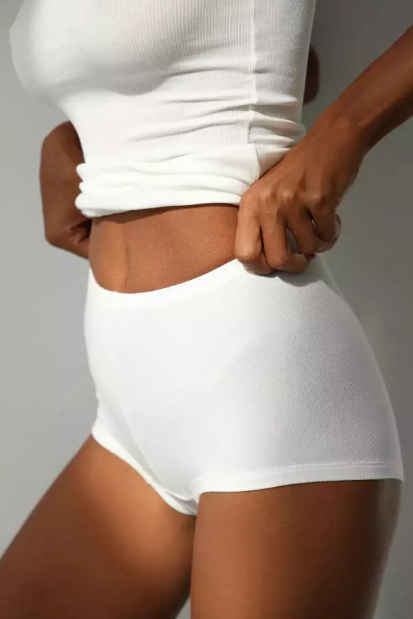 Жіночі труси-брифи з модалового рубчика, колір молочний - це ідеальне поєднання стилю, комфорту та високої якості. Вони стануть базовим елементом вашого гардеробу, який забезпечить вам комфорт та впевненість на кожен день.