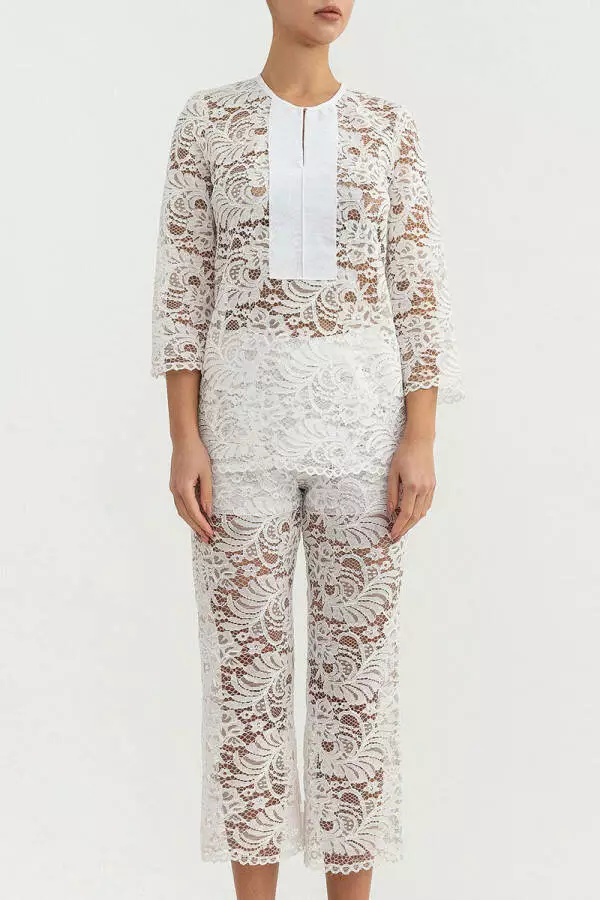 Женский костюм гипюровый брючный German Volf белый M(44)
