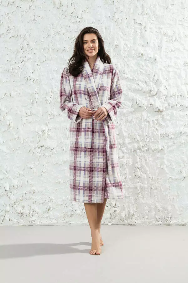 Теплий жіночий халат з плюшевої тканини в клітинку від German Volf — це ідеальне поєднання комфорту та елегантності. Виконаний з високоякісного велсофта (100% поліестер), цей халат дарує ніжність і тепло, що робить його ідеальним для прохолодних вечорів і затишних ранків. Широкий комір, зручний пояс і манжети додають додатковий комфорт, а стильний принт у рожеву клітинку додає образу вишуканості.