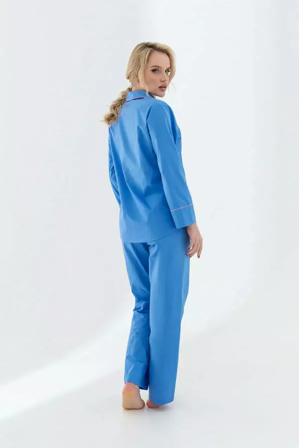Класична жіноча піжама з кантом Піжама виготовлена з м'якої натуральної бавовняної тканини, приємно прилягає до тіла та добре пропускає повітря. Вільний крій подарує відчуття легкості та комфорту. Ця модель чудово підходить як піжама для сну, а також як домашній одяг.