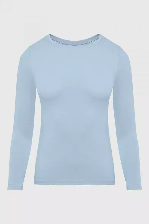 Жіночий лонгслів від відомого бренду German Volf є базою гардеробу кожної жінки, так як з ним можна створити безліч стильних образів, придатних для будь-якої пори року. Модель крою, що облягає, з круглим вирізом, який підкреслює красу декольте. Тканина з блакитного трикотажу відрізняється високою якістю завдяки складу з 95% бавовни та 5% еластану для максимального комфорту. Ця м'яка і приємна на дотик тканина не кашлатається і не линяє. Дана модель доступна для замовлення у всіх розмірах (xs, s, m, l, xl) і відмінно поєднується як із класичним, так і зі спортивним стилем.