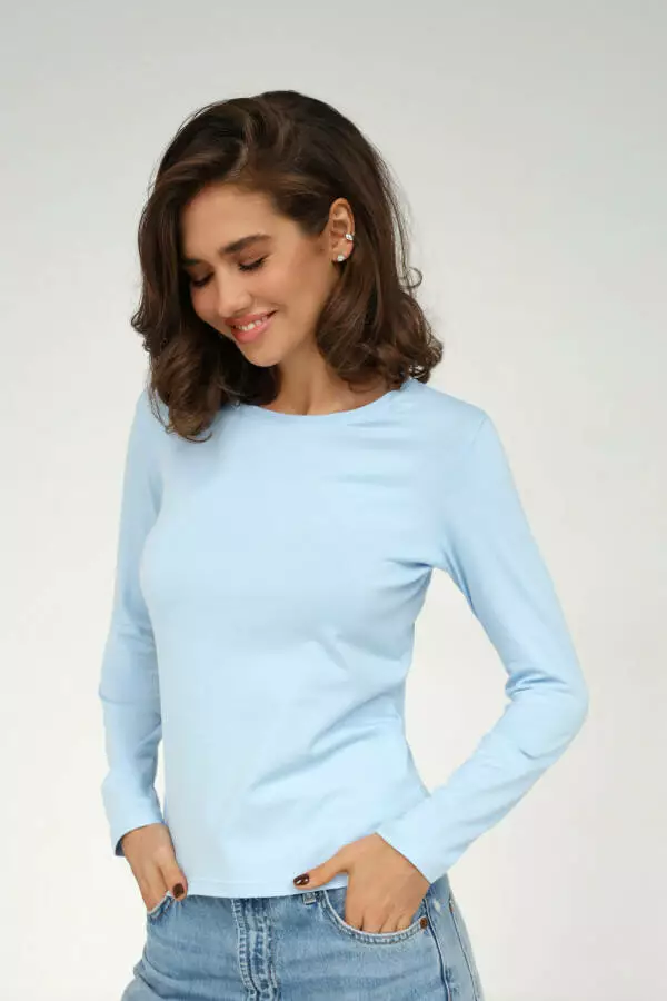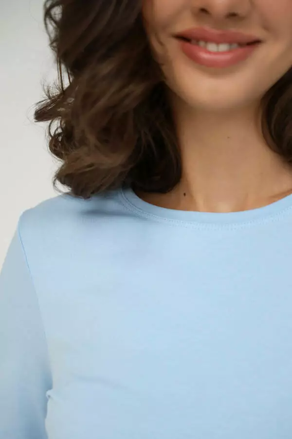Жіночий лонгслів від відомого бренду German Volf є базою гардеробу кожної жінки, так як з ним можна створити безліч стильних образів, придатних для будь-якої пори року. Модель крою, що облягає, з круглим вирізом, який підкреслює красу декольте. Тканина з блакитного трикотажу відрізняється високою якістю завдяки складу з 95% бавовни та 5% еластану для максимального комфорту. Ця м'яка і приємна на дотик тканина не кашлатається і не линяє. Дана модель доступна для замовлення у всіх розмірах (xs, s, m, l, xl) і відмінно поєднується як із класичним, так і зі спортивним стилем.