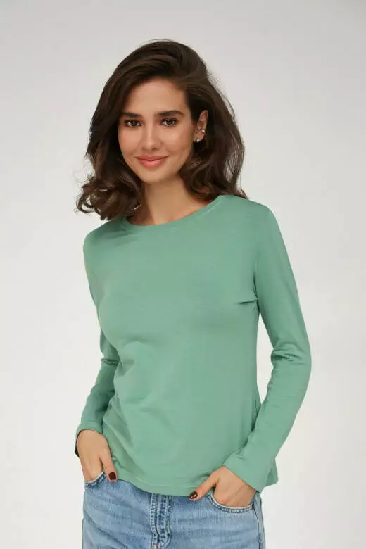 Жіночий лонгслів з довгим рукавом, бавовняний, зелений