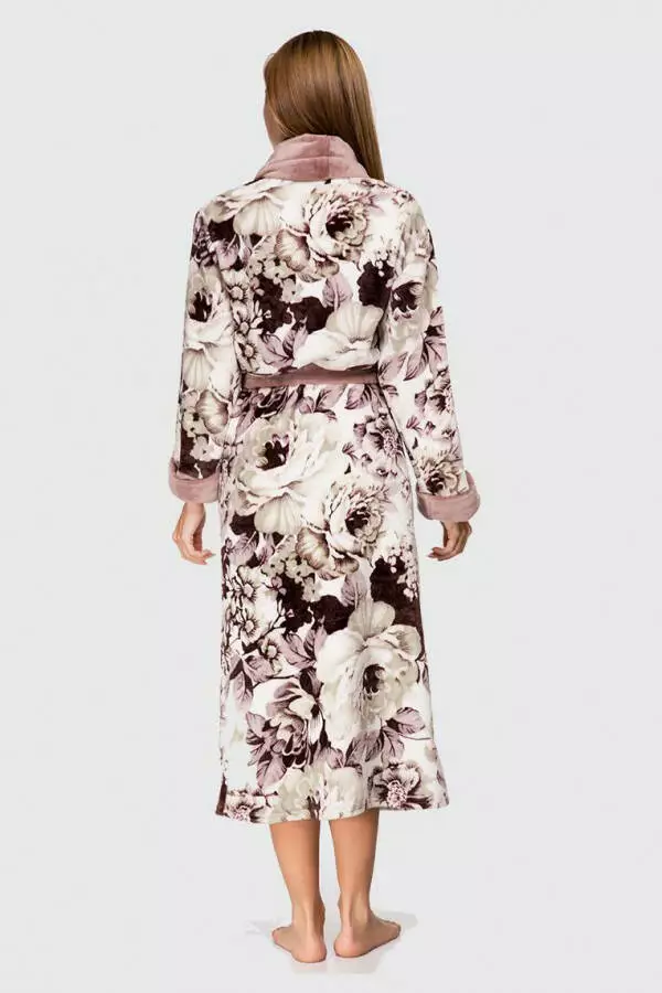 Теплий жіночий халат з плюшевої тканини від German Volf поєднує комфорт і стиль. Виконаний з високоякісного велсофта (100% поліестер), цей халат забезпечує м'якість і зберігає тепло, що робить його ідеальним для прохолодних вечорів. Особливий дизайн із квітковим принтом і контрастним пудровим коміром додає шарму та жіночності.
