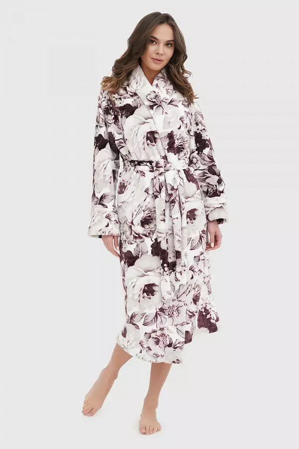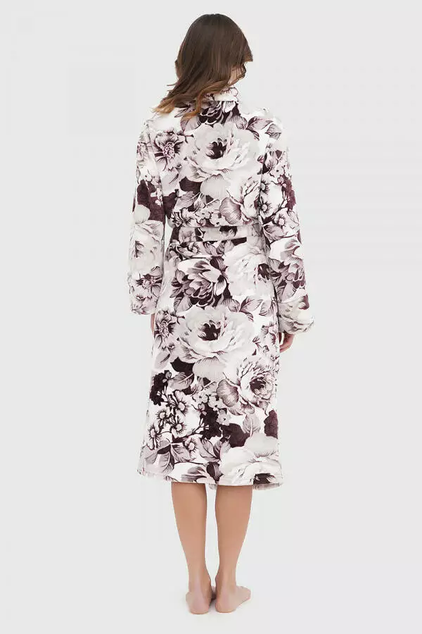 Теплий жіночий халат з плюшевої тканини від German Volf поєднує комфорт і стиль. Виконаний з високоякісного велсофта (100% поліестер), цей халат забезпечує м'якість і зберігає тепло, що робить його ідеальним для прохолодних вечорів. Особливий дизайн із квітковим принтом і контрастним пудровим коміром додає шарму та жіночності.