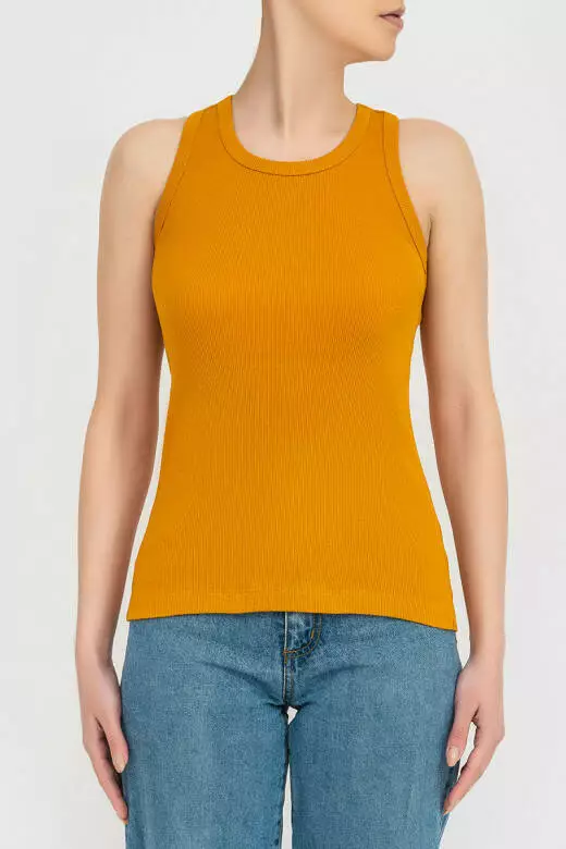Жіночий топ із бавовни в рубчик, повсякденний, оранжевий